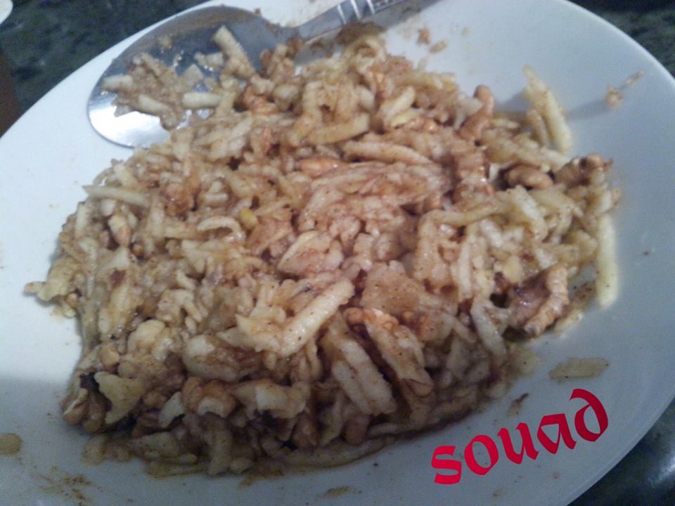 قرفة+٢ملعقة كبيرة سكر أسمر +نصف كوب جوز مكسر