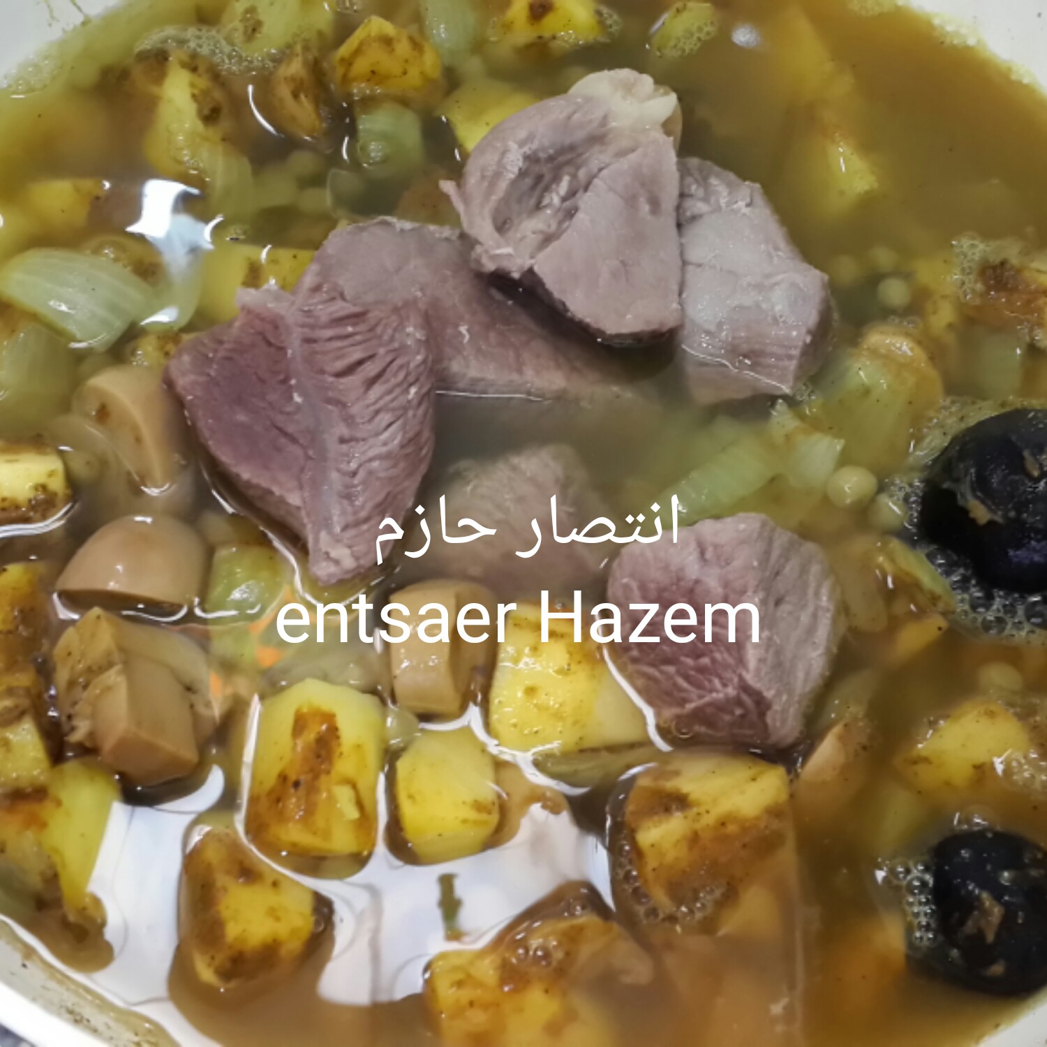 - نضع الحم بقدر ونضعه على النار الى ان يستوي ثم نتركه جانبا