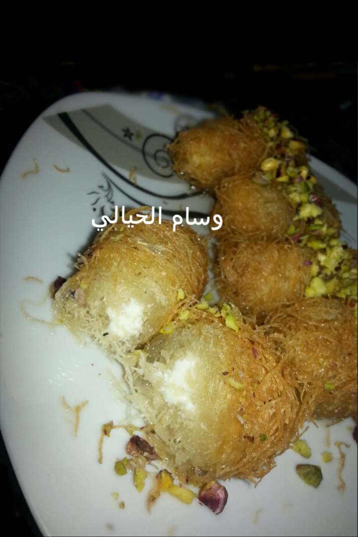 • كنافه اصابع محشيه بالجبن عجينةكنافه.جبن كيري.شيره ثخينه نوعآ ما.مع اضافة شوية عسل.فستق حلب للتزين. اول شي تاخذين خصل مناسبه من عجينةالكنافه.وتخلين نص قطعه من جبنة كيري وتلفيها بحيث الجبن مايطلع من الجوانب. وتدهنين صينيه بالدهن(سمنه)وتصفين اصابع الكنافه.وتصبين دهن ذايب فوقاتها بحيث تتشبع بس مايغيطها.