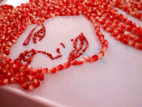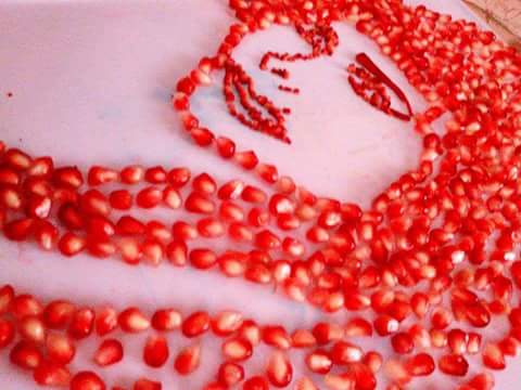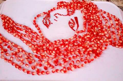 تقوم صديقة زاكي المتميزة الفنانة  Mosheera Ismail Mansour باستخدام موهبتها في الرسم لتبدع فيه ولكن بأدوات المطبخ وهذه المرة رسمت لنا صورة  باستخدام الرمان واترك لنا أعزاءنا في #شلة_الأنس رأيكم في التعليقات.