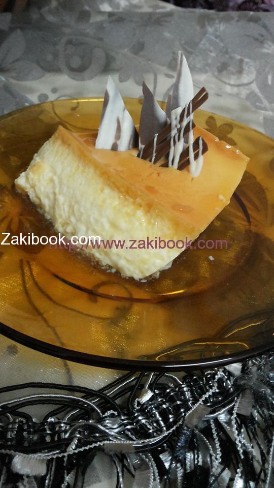 – وبعدين نصبه في القالب و نحطه جوا صنية اكبر منه و نحط ميا في الصنية الي برا لغاية منتصف القالب و يدخل الفرن لمدة تقريبا نص ساعه او لغاية ما نجرب ندخل فيها خلة سنان و تطلع مش ﻻزق عليها حاجة زي الكيك لما نعمله و بعد ما يخرج من الفرن و يبرد شوية ندخله الثﻻجة لمدة ﻻ تقل عن 4 ساعات و بعدها جاهز نقلبه و الف هنا على قلوبكم.