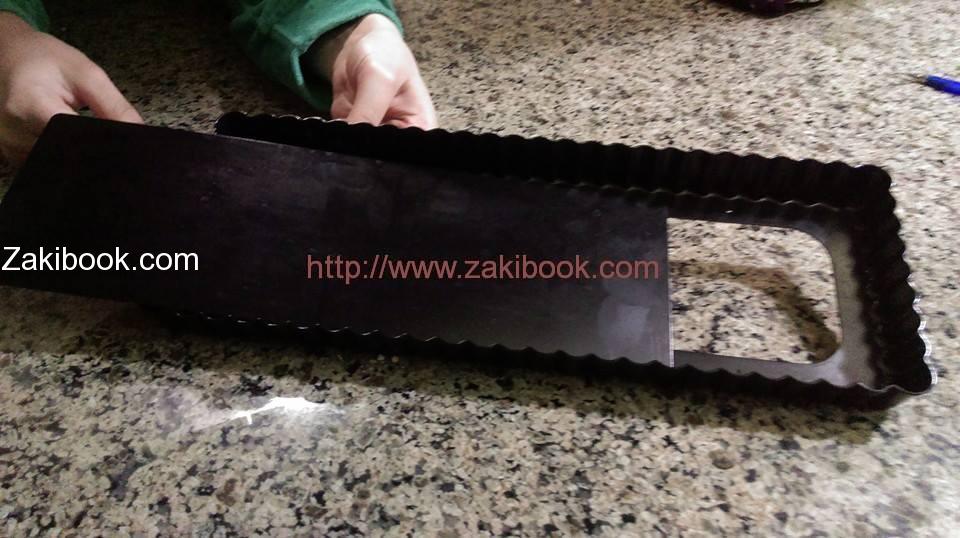 – ويفرد العجين بالنشابه أي الشوبك (الشوبك هي المرقة أو أداة فرد العجين) وتلبس في القالب وتخرم القاعده بالشوكه ثم نضع ورقه زبده وعليها اي نوع من البقول وتسوي في فرن ساخن ١٨٠ درجه.