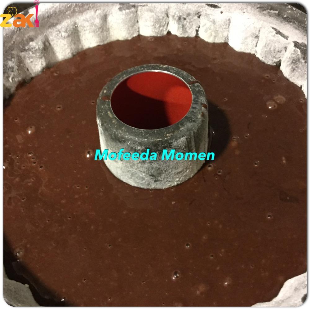 يخلط البيض مع اللبن والزيت والفانيليا ويضاف الي خليط الكاكاو