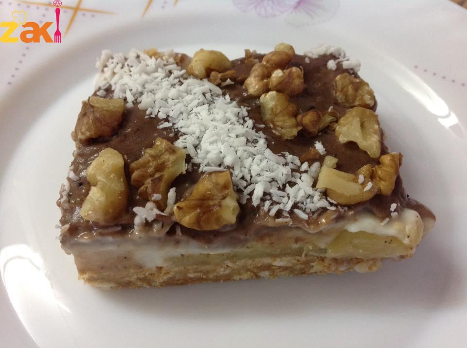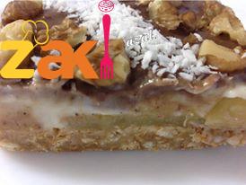بسكت نكسره بيدنا ونضيفله ربع قالب زبدة وربع علبة قشطة ونخلطهم سوا ونرصه ببايركس.