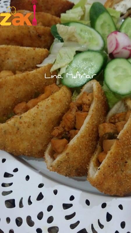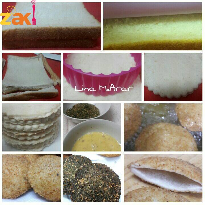 نضع قطعتين توست فوق بعض بعد ان نقص الاطراف ونفردها بالفرادة ( فرادة العجين ) وبنقطعهم بقطاعة دائرية الشكل وبنغمسهم بصحن محطوط فيه ( بيضتين مخفوقات مع رشة فلفل اسمر وريحان او اوريغانو ) بعدها بنغطها بالقسماط او بالزعتر حسب الرغبة وبنقليهم لحتى يصير اللون عشقار وبنقسمهم من النص وبنحشيهم حسب الرغبة انا حشيتهم حشوة الدجاج.