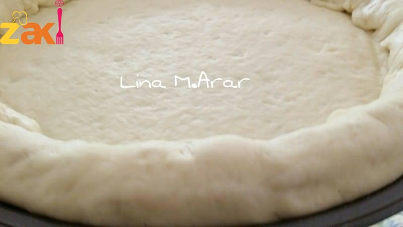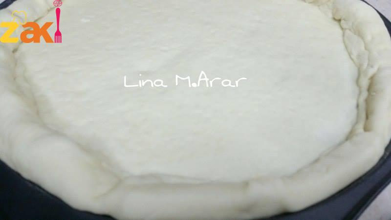 بنحطها بفرن محمى مسبقا من تحت عاخفض درجة حرارة لحتى تستوي من تحت ( بنرفعها برفق بطرف شوكة لنتأكد من انو العجينة من تحت جهزت ) وبعدها بنطفي من تحت وبنشغل من فوق وصحة ومية هنا