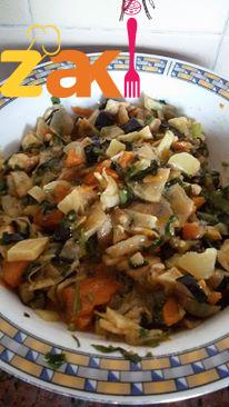 صدر دجاج افرميه وتبليه بتابل الدجاج وبودرة التوم وبودرة البصل وفلفل وملح وخليه في التلاجة وجهزي الحشوة عبارة عن مكعبات دجاج طايبة في بصل وفلفل أخضر وضفت عليها مكعبات الجزر وشوية معدنوس