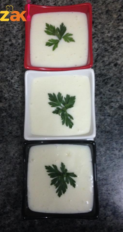 حبة بطاطا منغسل الرز ومنحطو عالنار مع كاستين مي ومنقشر البطاطا ومنقطعا قطع صغيره ومنضيفا فوق الرز ومنخلين ينسلقو مع بعض بس استو منطفي تحتن ومنخلين ليبردو بعدين منحطن بالخلاط منضيف معن كم سنة توم ونص كاسة زيت وملح وحمض ومنخلطن حتى يصيرو متل كريم