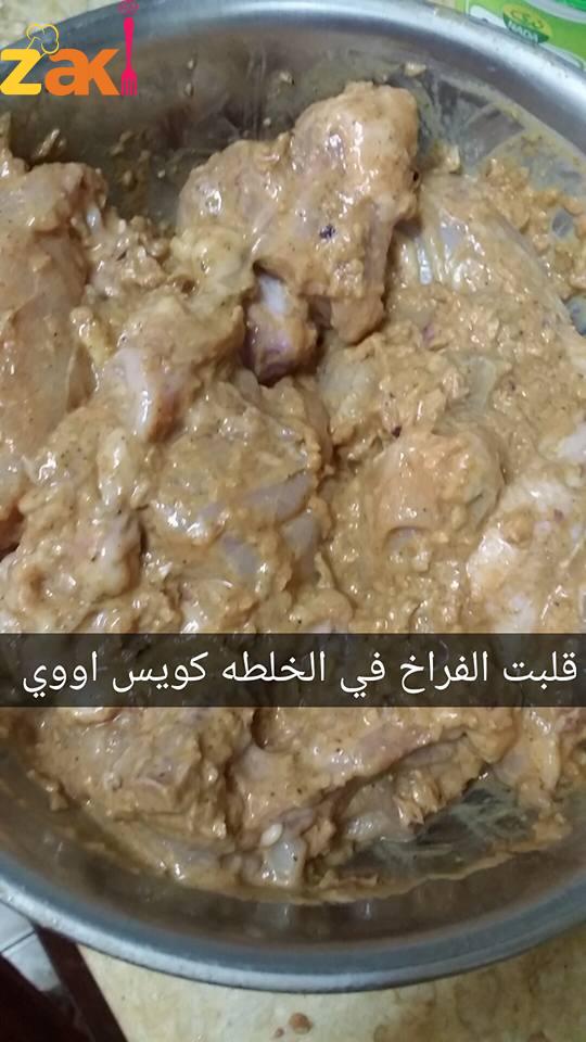 بتقطعي الفراخ قطع صغيره تشيلي الجلد وتعملي الخلطه إلى فى الصور وتحطي الفراخ جواها وبعدين تخليها اربع ساعات أو من بليل وبعدين تطلعيها من الخلطه تحطيها بالدقيق المضاف إليه ملح وفلفل وتطلعيها في زيت ساخن غزير وتوطي الحراره جدا وتغطي عليها بعد 10دقائق ترفعي الغطا وتشوفي إذا حمرت اقلبيها وغطي لغايه ماتحمر من الجنب الثاني