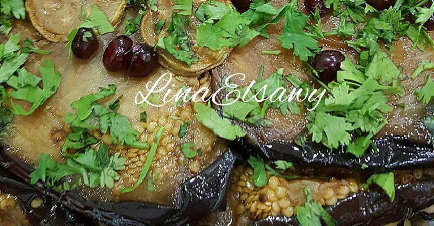 اخد صينيه التشيز وارص البتنجان فيها من الارضيه وعلي الاطراف