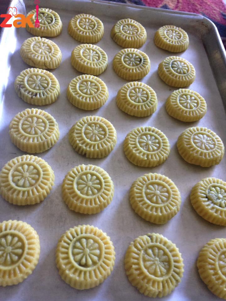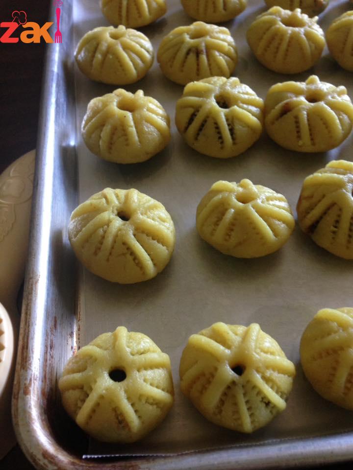 تخلط المواد الباودر وبعدين نضع البيضه والزبده والزيت وتعجن بالحليب حتى تصير طريه وتشكل بالقالب وتوضع بالفرن على حراره ٣٥٠حتى تستوي وتحمر من فوق والف صحه وعافيه حبيباتي