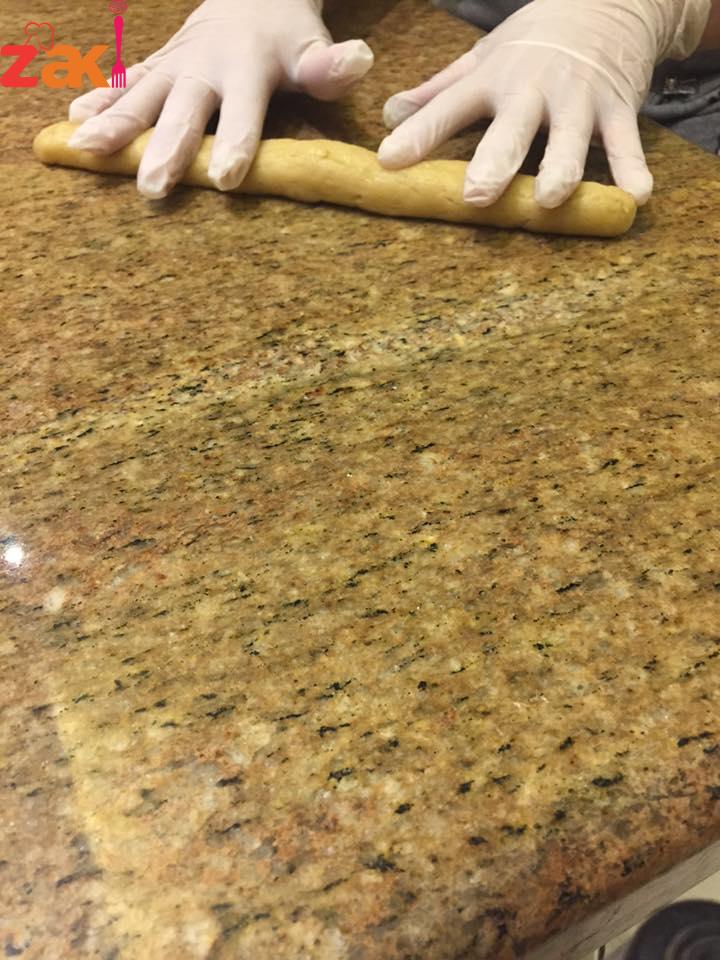 نبدأ التشكيل ومباشرة بعد ما ننتهي من الكمية نخبزها, لأنه ما فيها خميرة مباشرة بنشتغل فيها.