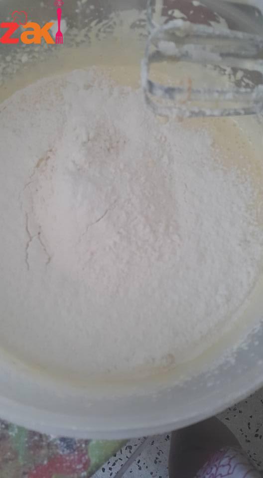 بعدها نضيف المواد سائلة ونخفق مدة4دقايق