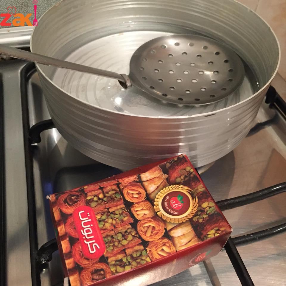 الأفضل قالب كيك بنحط بيه الماء والكربونات حتى يكون واسع وماهو مرتفع ويسهل انك ترمي الخبزات بالماء وبكل سهولة تقلبيها وتطلعيها فهمتي قصدي ؟ الطنجرة متعبة وعميقة