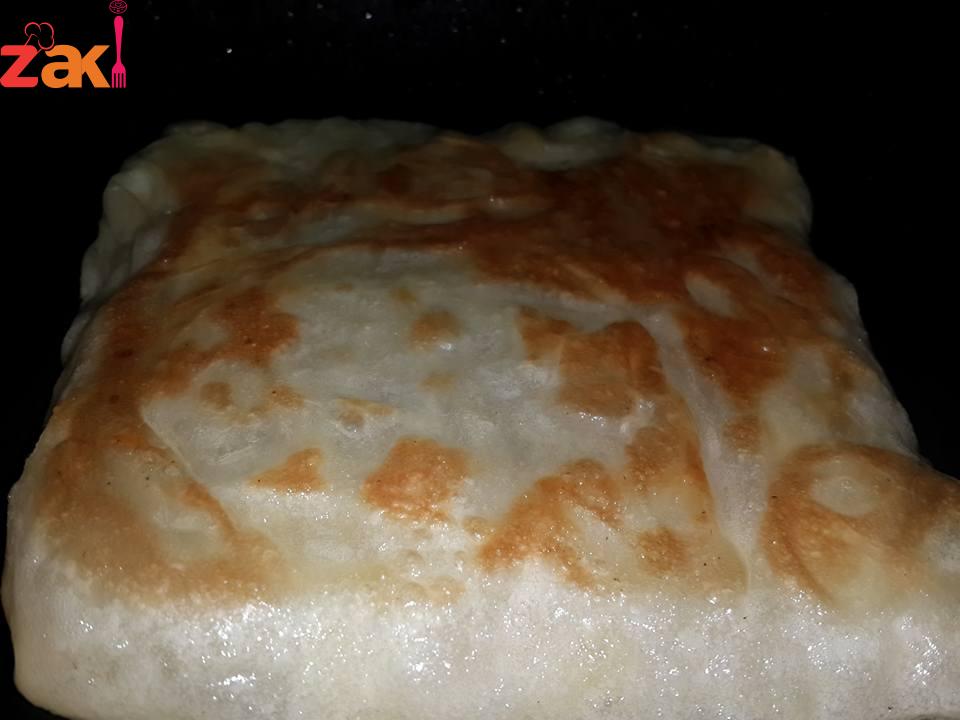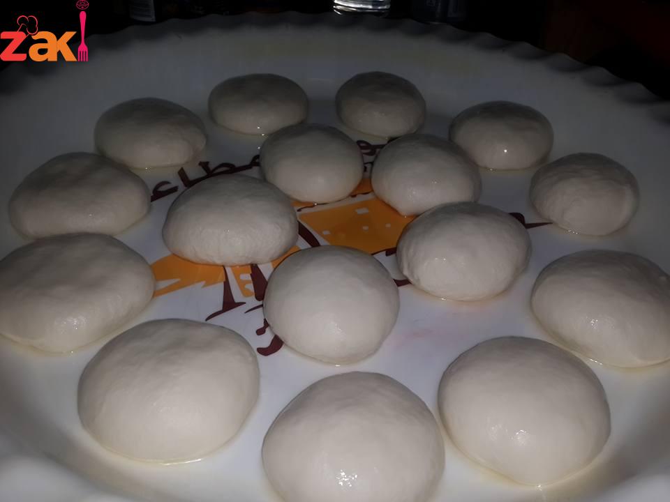 كيلو طحين . ملعقة كبيرة ملح. ملعقة صغيرة مسموحة بيكنج بودر وتعجنيها بالمية عجينة مش رطبة ومش يابسة ارطب شوية من البيتسا واسبكيها كويس هذا سر نجاحها وقرصيها وخليها ترتاح حتى نص ساعة وابدي حلي بالوحدة ديري مزيج من السمن والزيت أو الزبدة والزيت وادهني ايديك وحطي عليها شوية وحليها بالراحة وابدي من النص افرديها على قيس ماتقدري ورشي عليها من الدهان وطبقيها من من الإمام للنص ومن الخلف للنص ومن اليمين واليسار وعلي طاوة حامية ونار هادية وصحة وهناء