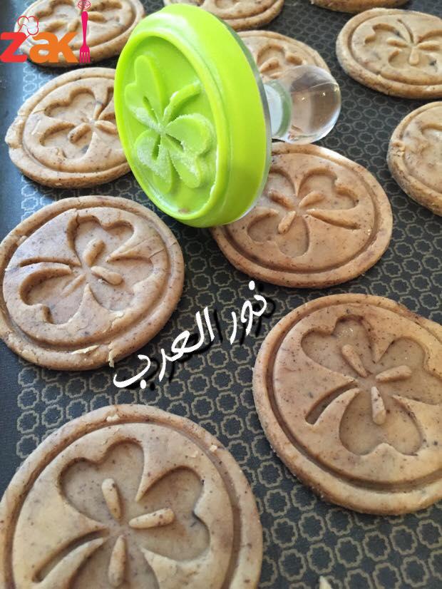كعك القرفة : كوب زبدة طرية ونصف كوب زيت وكوب الا ربع سكر ناعم وبيضة ونصف كوب نشا وملعقة بيكنج بودر وطحين وملعقتين قرفة وملعقة مسحوق النسكافيه