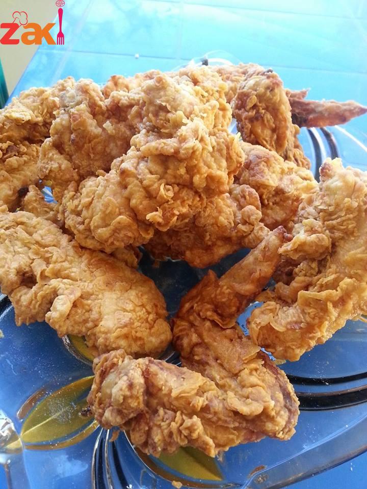 3 بياض بيض ومعلقتين خل ابيض وكوب طحين وكوب مي ومعلقه بهارات دجاج ومعلقه بصل مطحون وسنين توم مهروس ومعلقه بابريكا ومعلقه ملح وعصره ليمونه بتخفقيهم جيدا مع بعض بتضيفي عليه دجاجتين مسحب او بالعظم اذا بالعظم تكون الدجاجه وزن كيلو و200 غرام ومشرحه ونتركه منقوع اقل شي 4 ساعات