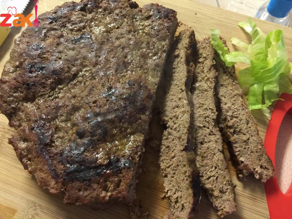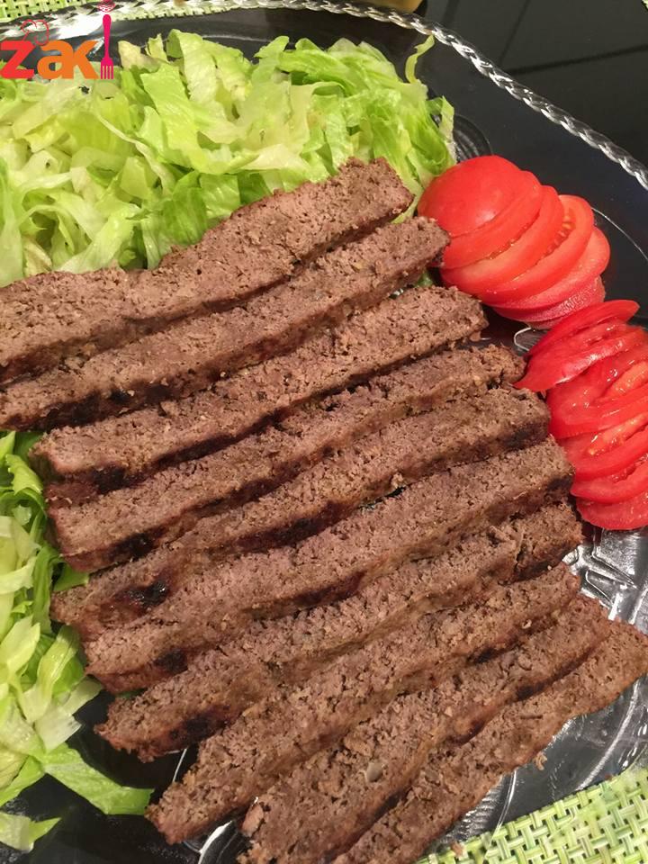 نضع اللحمه في صينيه نبلل اليدين بقليل من الزيت ونشكل اللحمه على شكل مستطيل ارتفاعه تقريبا 8 إنش وعرضه 5 إنش لا نمدها في الصينيه نريد مستطيل متل المكعب.