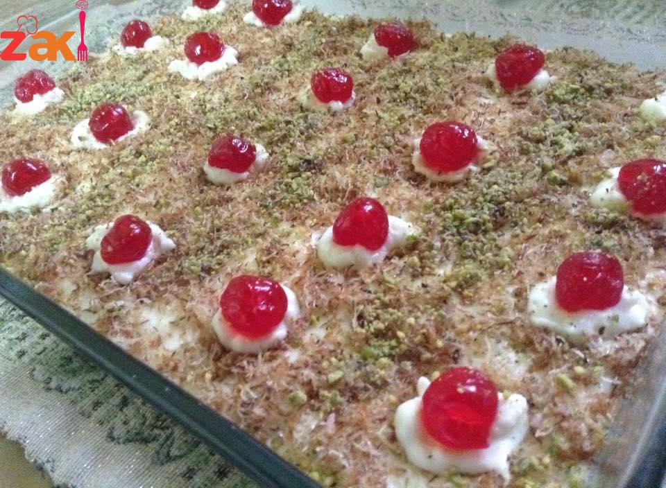فستق حلبي ناعم بقايا من الحشوة البيضاء وتزين بالكرز حسب الصورة حسب الذوق