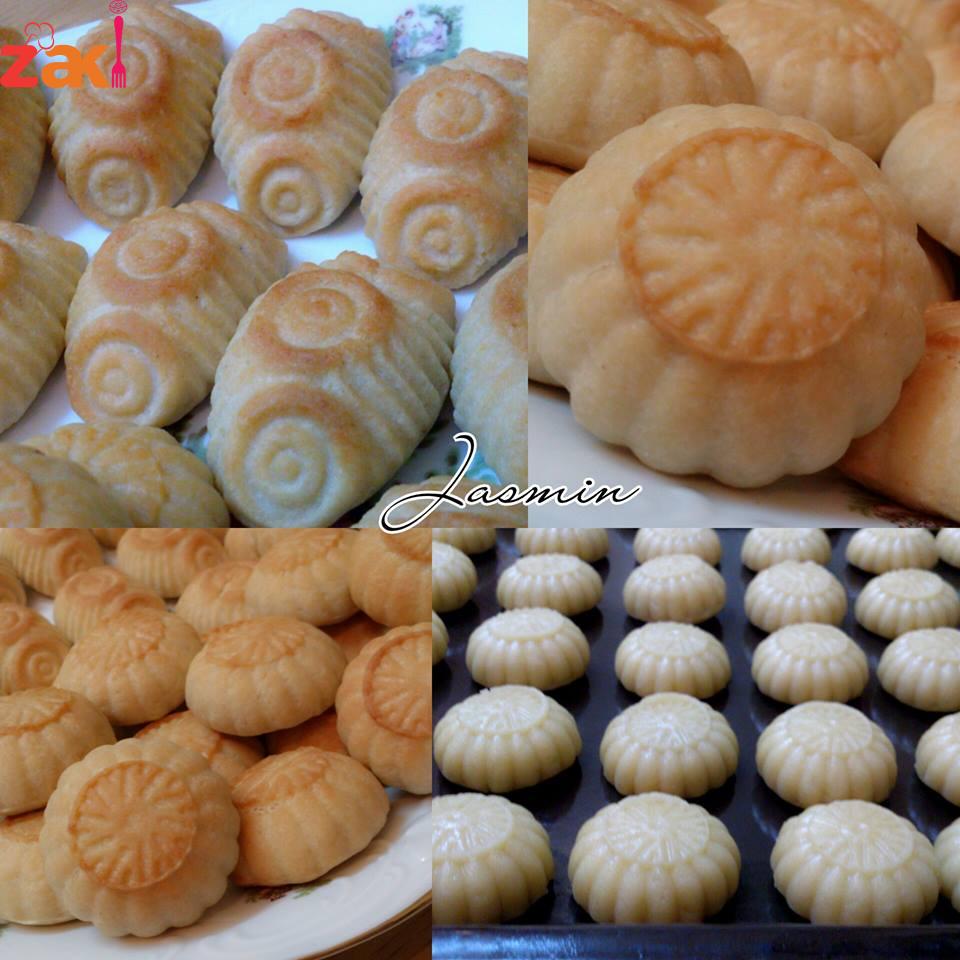 نص كيلو طحين عادي ونص كيلو طحين فرخة (يعني طحين السميد) منفركهن مع نص كيلو سمن حيواني ونشيل من السمنة كاسة شاي ونحط بدالها كاسة شاي زيت نباتي ونريحها ربع ساعة بالبراد ونخلط كاسة مي و4 معالق كبار حليب بودرة ووكاسة سكر ليصير مزيج كريمي ونضيفهن للطحين ونعجنهن باطراف الاصابع ونتركها ترتاح نص ساعة ومنشتغل فيها