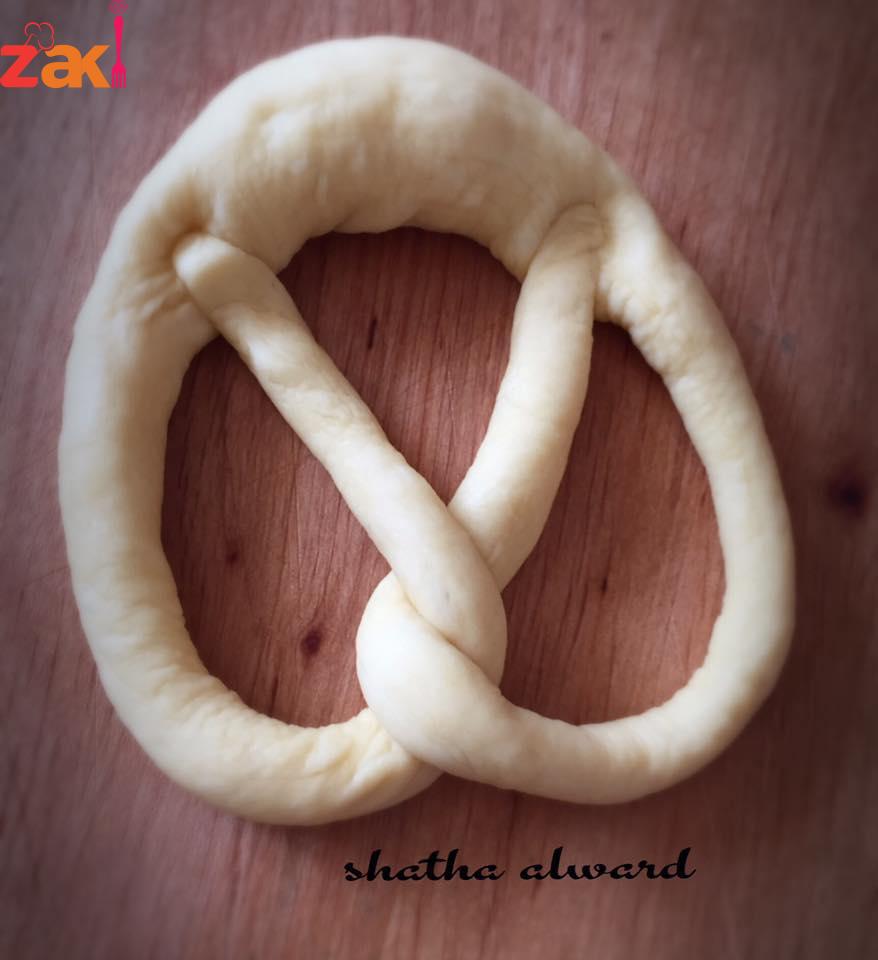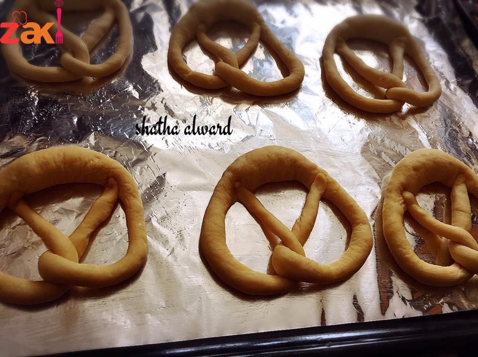 الف القطع بالشكل للي اريده وطبعاا اخذ قدر ماء حار يغلي واضيف ملعقة بيكنك صودا اغطس الخبز وحدة وحدة مدةة ٣ثواني وطلعها اخلي ع ورق شوية مدهون زيت حتى لتلتصق واتركها ترتاح ربع ساعة وامسح الوجه بصفار بيضة فانيليا وارش سمسم او اي شي حبة البركة او ملح خشن ممكن وتشوى في فرن مسخن وتقدم بالف عافيةة الغرض من تغطيس الخبز بالماء الحار والبيكنك صوداا يعطيهاا من الخارج لون احمر وقرمشة ومن داخل تبقى هشةة وصحة وعافية ?شذى الورد ?
