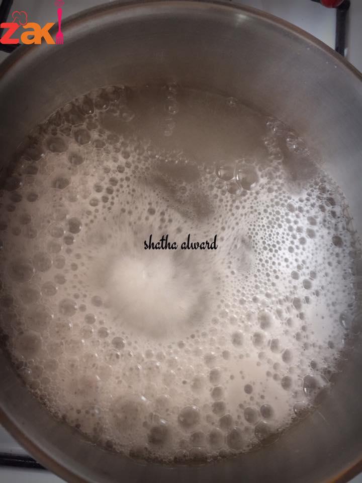 نضع ملعقة السكر والخميررة في نصف كوب ماء دافي لتتفاعل دقايق