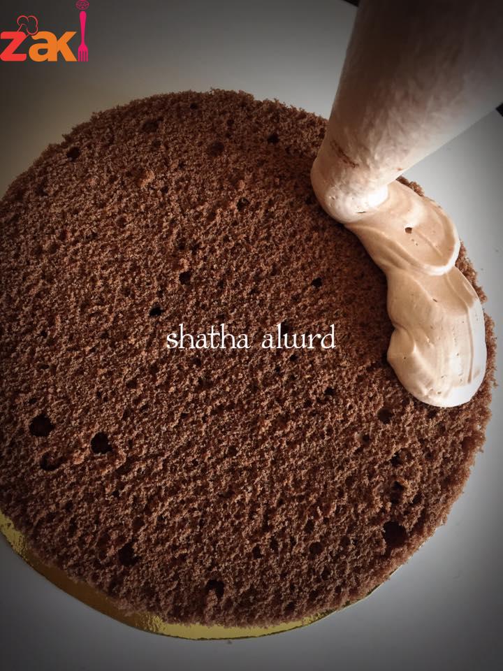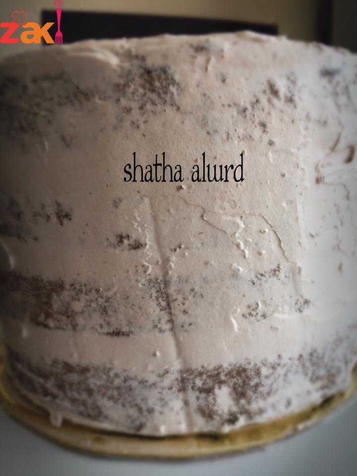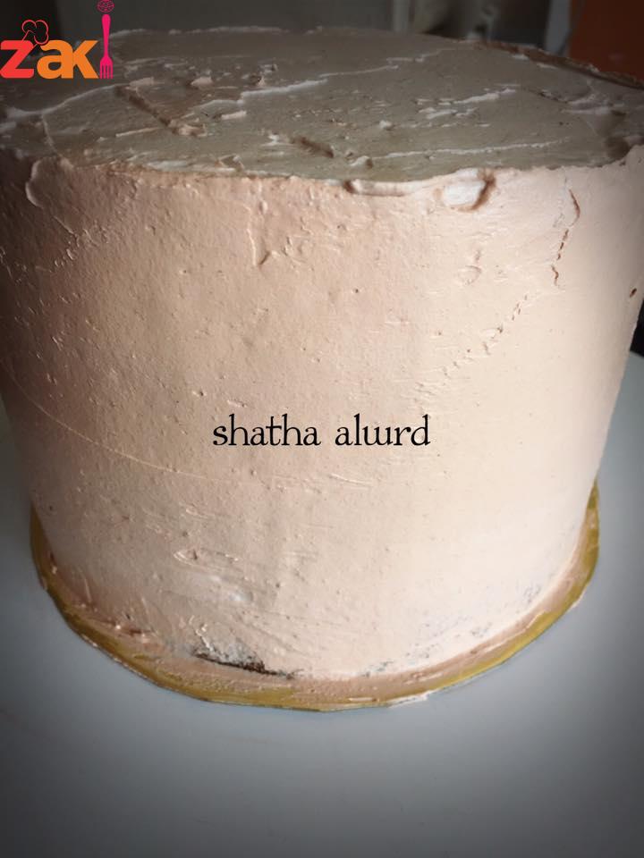 اما بالنسبة الكريمة بالاول اعمل طبقة خفيفة تغطي كل اطراف الكيكة وادخلها الثلاجة