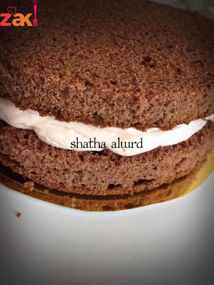 نضع خليط الكيك في صينية فرن لمدة نصف ساعة أو أكثر حسب نوع فرنك, ونترك الكيك يبرد ونقسمه إلى ثلاث طبقات