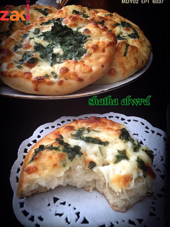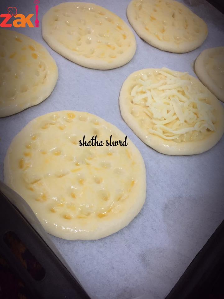 وتدهن بالصفار وملعقة حليب ثم ترش القطع بالبقدونس والجبنة وتدخل الفرن وتقدم بالف عافية