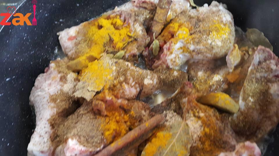 اول شي بتاخدي بصلة وحدة من المفروم ناعم وبتحوسيها ع الغاز مع كم حبة ثوم وبعدين بظيفي قطع الدجاج وبتظيفيلهم القرفه العيدان والهيل الحب وبهارات القدرة وكبش القرنفل والكركم والكزبرة وورق الغار وبتحوسيهم كلهم مع بعض منيح بالزيت وبتخلي الجاج يتقلى منيح وياخد من طعم البهارات بعدين بتغمريه بالمي وبظيفي مكعبات المرق وبتخلي الجاج لحد مايستوي ….
