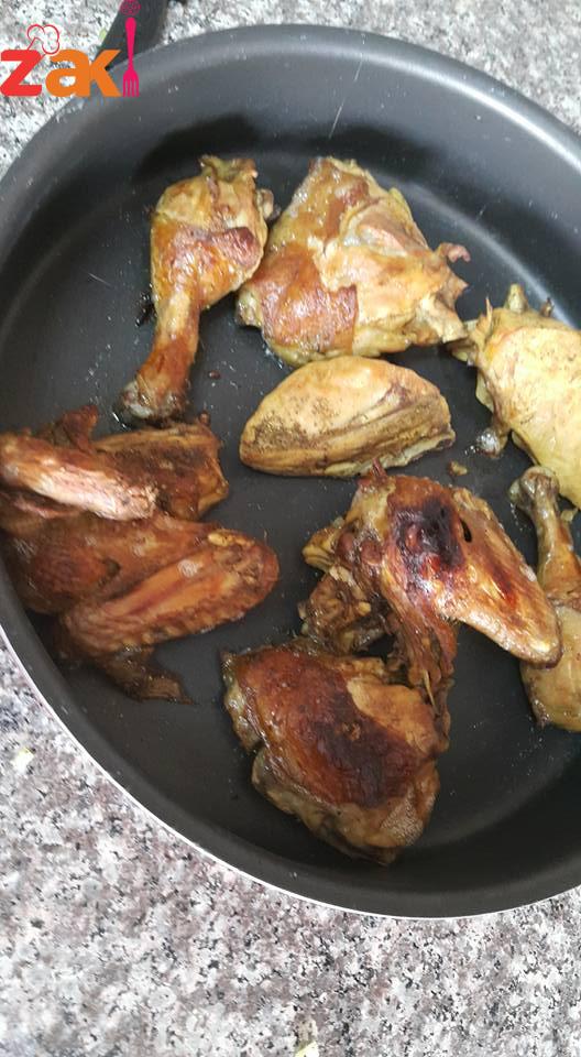 بعدين بتجيبي البصلتين المفرومين ناعم وبتحوسيهم بمعلقتين سمنه وبتظيفي حبات الثوم وبتحوسيهم منيح وبظيفلهم الرز المنقوع بعد ماتصفيه والحمص المسلوق وبهارات القدرة وكركم وملح وفلفل اسود والقرفه الناعمه والهيل المطحون ورشة من الكزبرة المطحونه وبتحركيهم مع بعض وبعد مايستوي الجاج بظيفلهم المرقه تاعة الجاج وبتخلي الرز لحد مايستوي وبتحمري الجاج بالفرن وصحتين وعافية ???