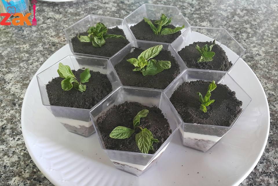 بتفتفتي الكيك وبتحطية بالاكواب وبعدين بتخفقي مكونات الطبقة التانيه كلهم مع بعض وبتحطيهم فوق الكيك وبدخليهم الثلاجه لحد ماتتماسك الطبقة الثانيه وعند التقديم بتحطي الاوريو المطحون وبتزيني بالنعنع ?
