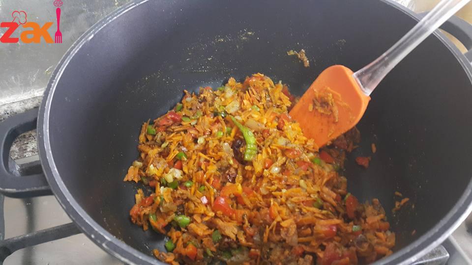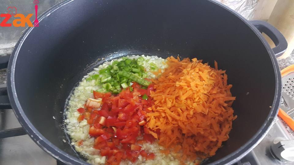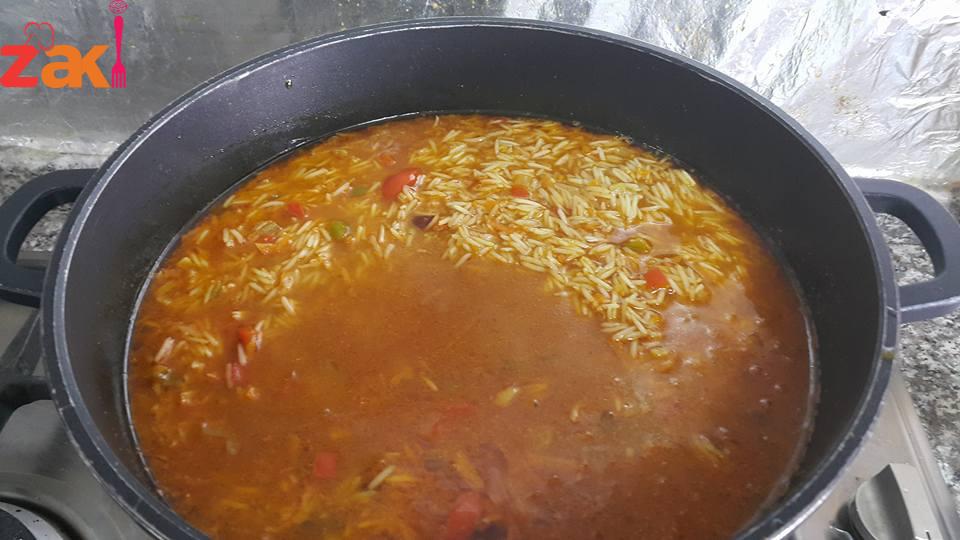 بنحط بالطنجرة زيت قلي ونبلش اول شي بنحط البصل وبس تذبل بضيف الثوم وبعدها بنزل المكونات التانيه وبحركم مع بعض وبوطي الغاز لحد ما تذبل كلها مع بعض بعدين بضيف الها رب البندورة وكمية المي الي راح ينطبخ الرز فيها وبس يغلو مع بعض بنزل الرز عليهم وبخليها بس تغلي بوطي الغاز واخر شي بضيف شوية سمنه ??