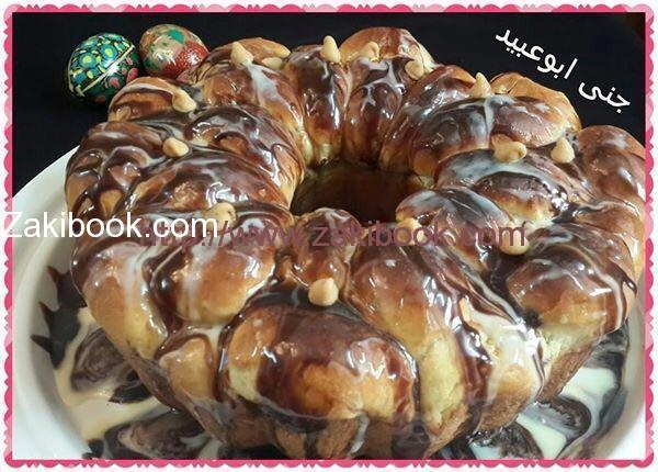 – بعدها شكلتها كور وحشيت كل كرة واحدة نوتيلا واحدة مربى وصفيتهم بالقالب المدهون بالزبدة وتركتها تتخمر كمان مرة لمدة نص ساعة خبزتها بالفرن على درجة 160حتى احمرت.
