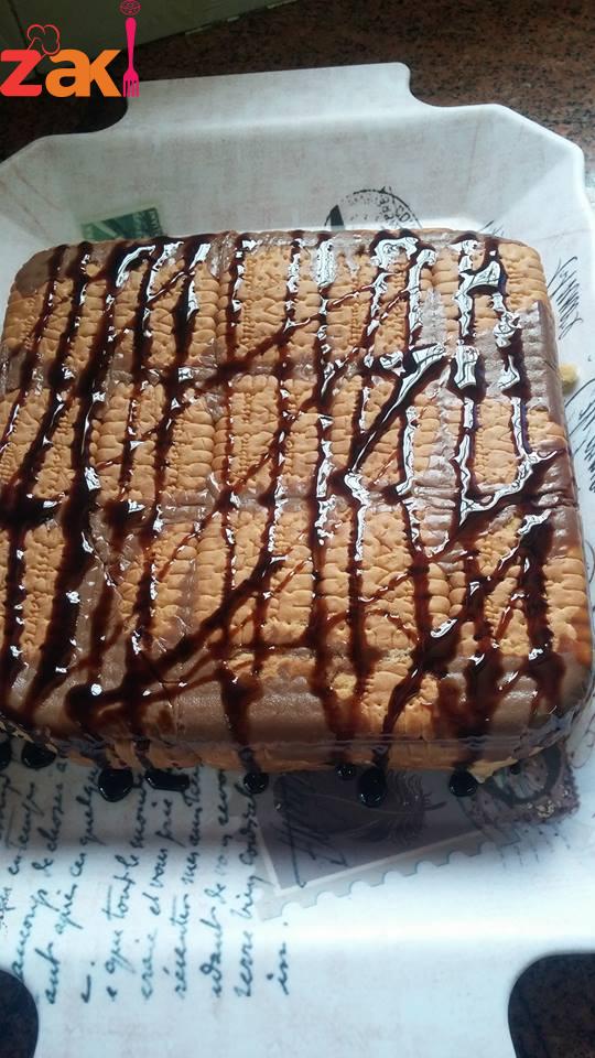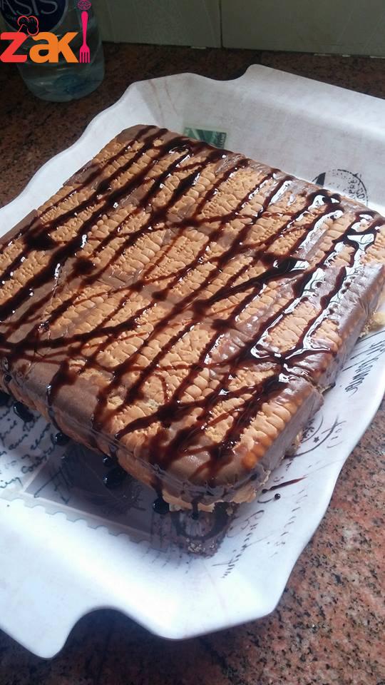 وبنخلط المكونات كلها بالخلاط وع الغاز بس يغلو بنحطهم فوق البسكويت وبنخلي كمان طبقه بسكوت وبندخلها التلاجه لتبرد