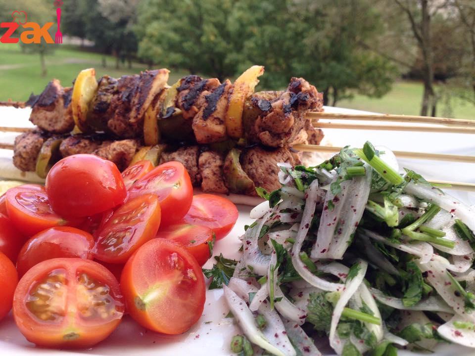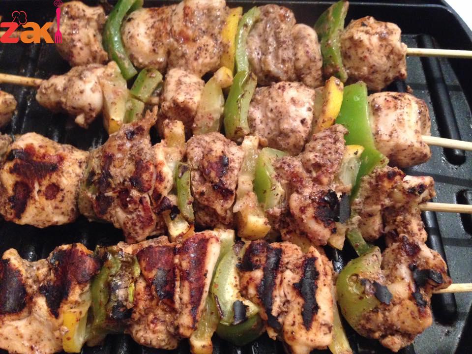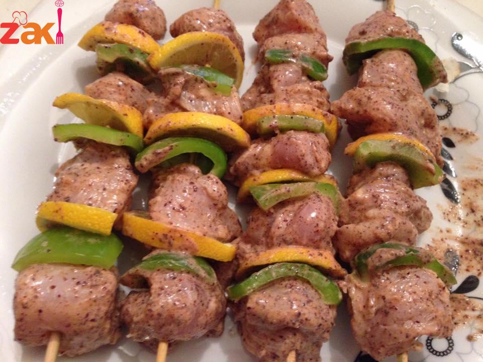 نخلط جميع المواد مع بعضها البعض ونضعها فوق الدجاج ونخلط جيدا ونترك الخليط في البراد لمدة اربعة ساعات او طيلة الليل ثم نشويهم في الفرن او على الشواية الكهربائي مع حامض وفليفلة خضراء لمدة عشر دقائق تقدم مع سلطة او تبلة وبندورة كرزية وحامض وصحتين …