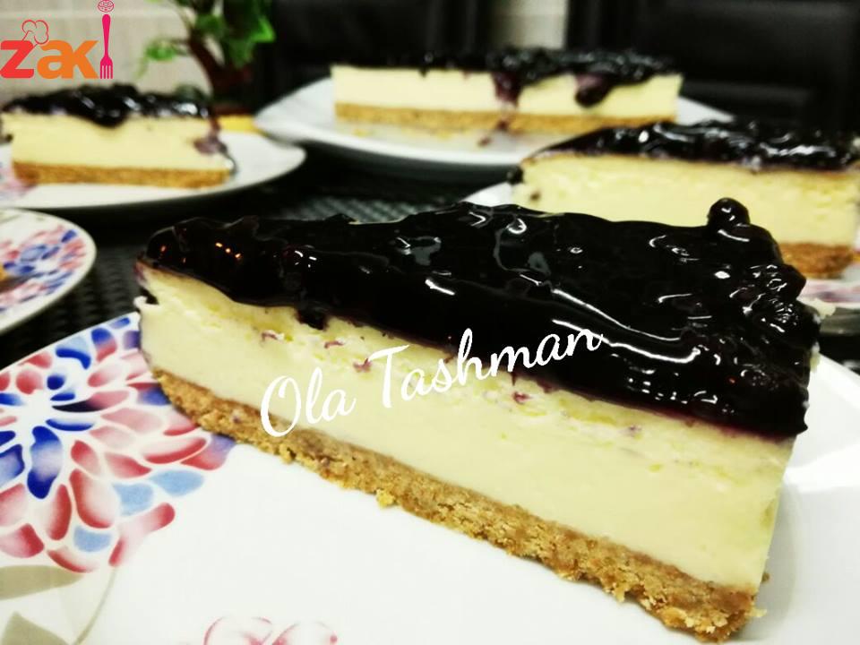 بالخلاط ..بنحط علبة لبن زبادي.170غ … 2 كاس حليب بودره … كاس سكر .. 10 حبات جبنة كيري … بنخفقه كتير منيح .. وبنحطهم فوق البسكوت .وبندخل الصنيه الفرن تحت الشوايه .. مدة بين 6 الى 8 دقائق حتى تمسك طبقة تشيز … بندخلها تلاجه اقل شي 6 ساعات او طول الليل … وقت تقديم بنحط علبة بلوبري والف صحه وهنا O.T
