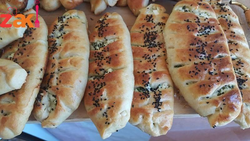 جبنة بيضة منقوعة ربع ساعة بمي دافي مصفاة جيدا ثم نضيف بقدونس . عجينة بشكل مستطيل توضع الجبنة بالوسط يشكل طولي ثم نقص الاطراف بالسكين ونعمل متل الجدولة..طرف من اليمين ثم طرف من اليسار وهكذا …
