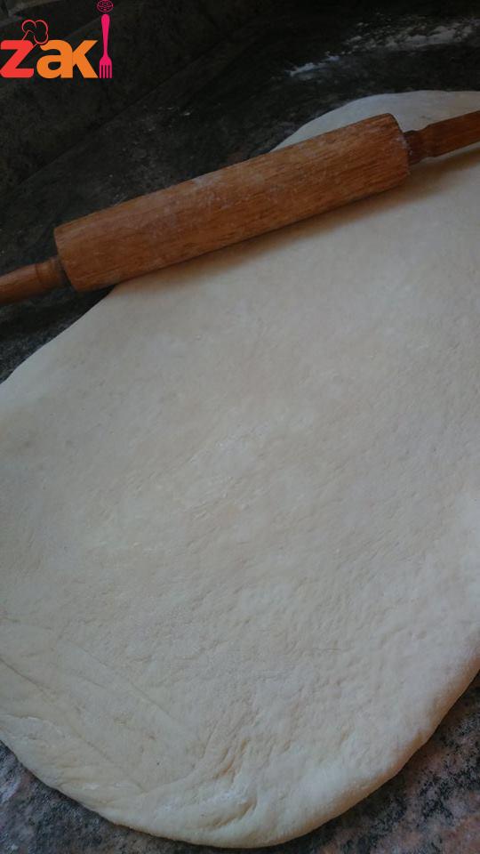 ستة أكواب دقيق بيضة واحدة ثلاث ملاعق سكر ربع كوب زبدة أو زيت ملعقة صغيرة ملح ملعقة ونصف خميرة مية دافية للعجن حوالي كوب ونص أو أقل شوي المهم تكون العجينة يابسة 200 جرام زبدة خاصة للتوريق تعجن العجينة وتترك ترتاح شوي