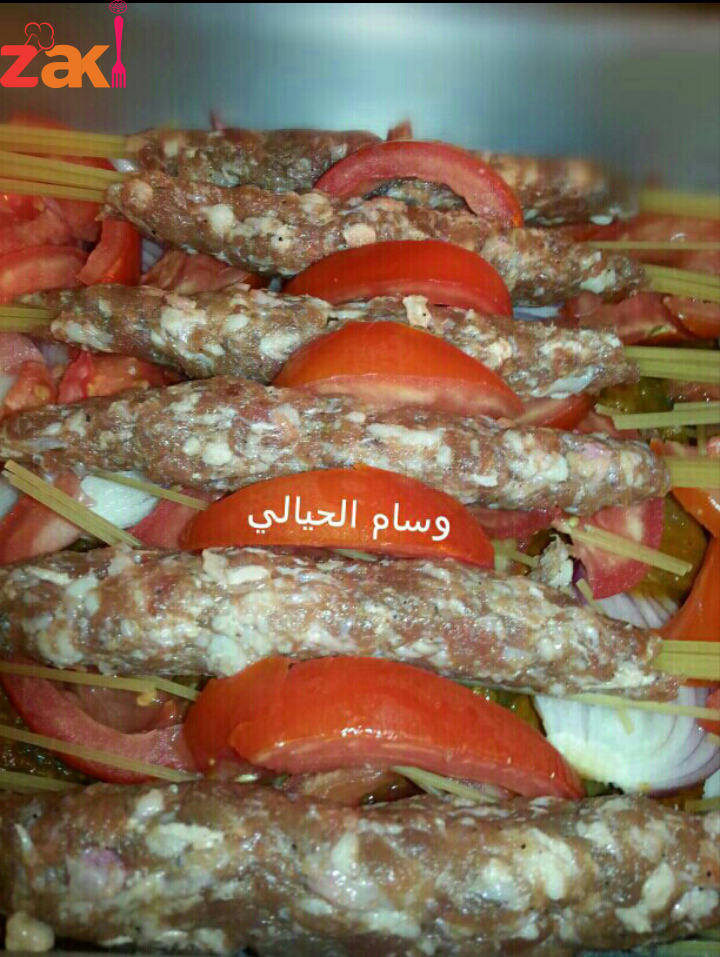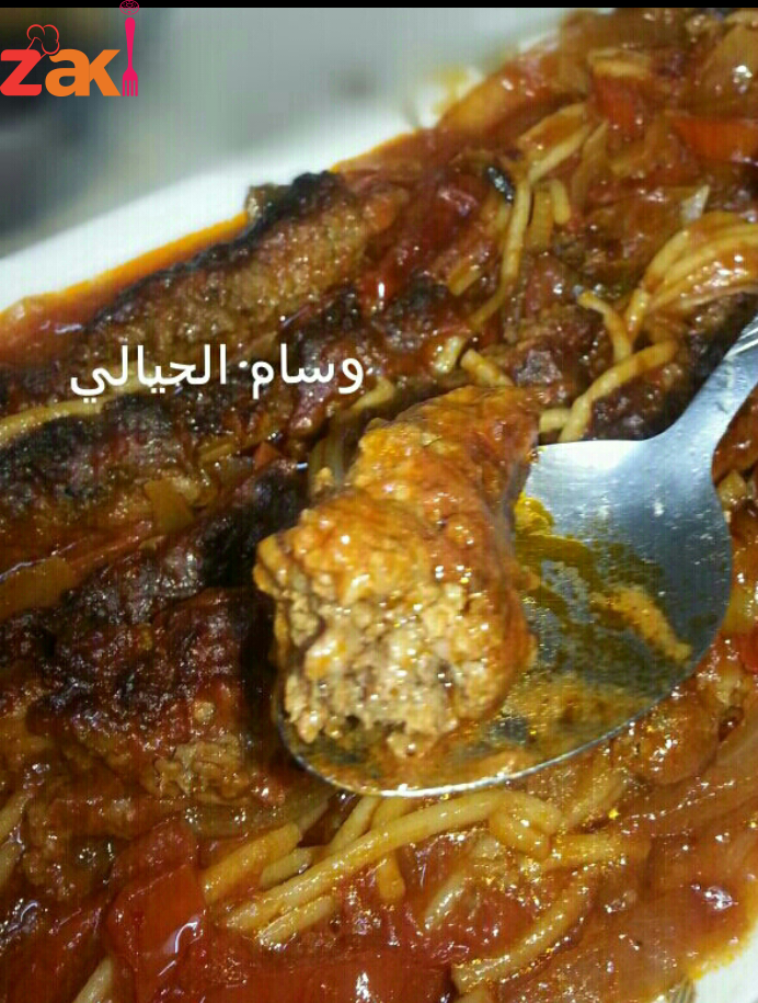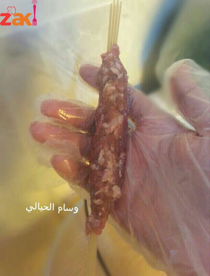 خلطت اللحم مع اليا وجزءمن البهارات ومعلقةالطحين عجنتهم لحد ماصارو قوام واحد اخذت 8 من عود الاسباكيتي وخليت اللحم بشكل كباب.