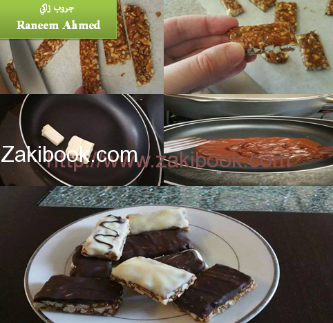 -وافرديها على رخامه او على طاوله وقطعيها ثم نضيف شوكولا خام مع القليل من الزبده على حمام مائي وزيني فيها.