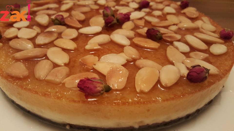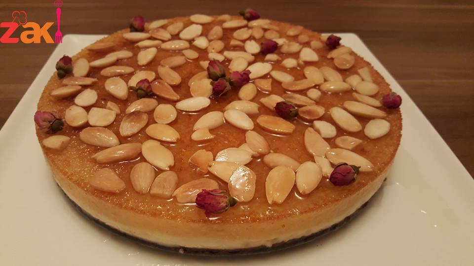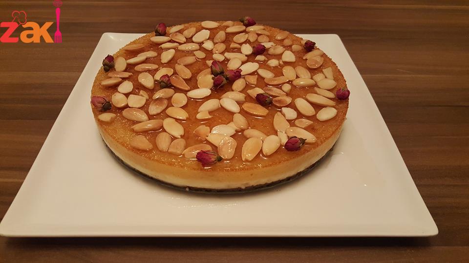 ●اخلطيهم منيح وصبي نص المقدار بقالب تشيز كيك مدهون بزيت وعالفرن ع 180 ليتحمروا الاطراف وبعدها حمري الوجه وحطي المهلبيه اللي عباره عن: