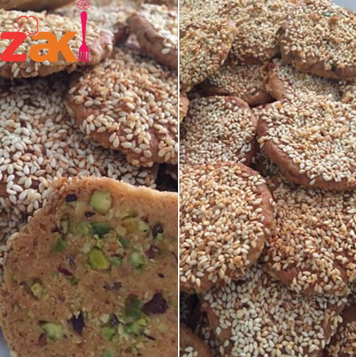 نضع السمسم الخلوط مع قليل من القطر الخفيف ونغطي الاقراص بالسمسم