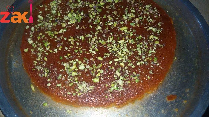 وبوزعها فوق الجبنه الي فردتها عالتوست وبفردها متيح بشكل متساوي بدخلها الفرن على نار هاديه شوي وببلش الفها لمده 20 دقيقه لحتى اشوف اﻻطراف صارت ذهبيه بطلعها من الفرن وبتركها شوي بمرر سكينه عاﻻطراف وبقلبها في سدر اكبر منهابصب عليها ابقطر الدافي وبزينها بالفزدق الحلبي المجروش وبقدمها ..