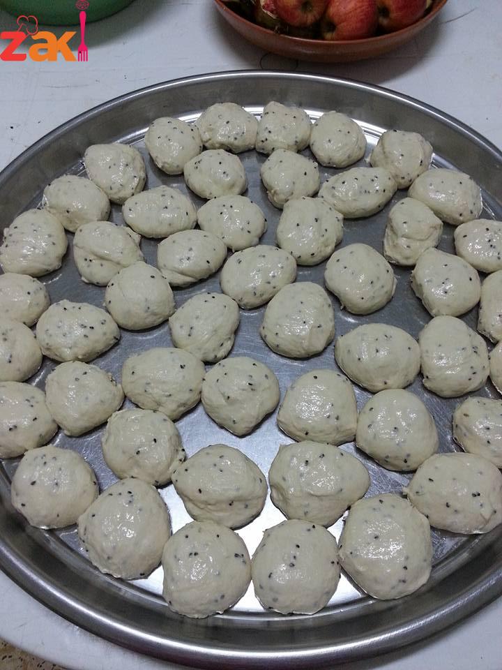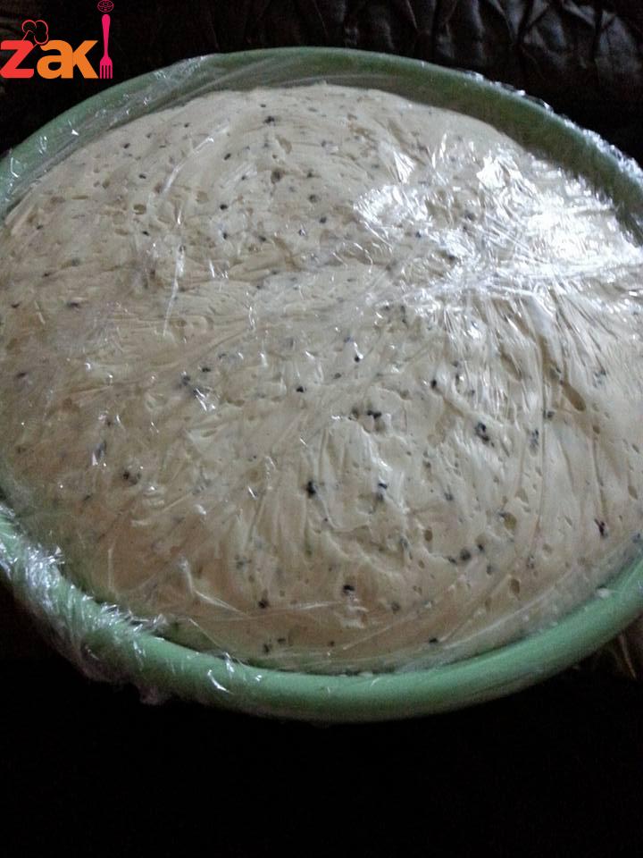 بتخفقي بيضتين وربع كوب زيت وكوب لبن رايب بحراره الغرفه مايكون بارد وملح ومعلقه سكر ومعلقه كبيره خميره واخفقي وضيفي ربع كوب حليب سائل سخنه حراره متوسطه ومعلقتين حبه البركه وانضيف طحين شوي شوي لما تصبح عجينه لينه متماسكه متل المره انطول بالعجن نعجنها من فوق لتحت ضرب يعني