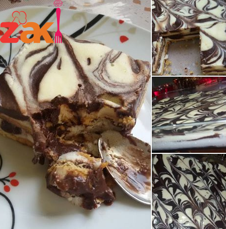 ونزيد فوق خليط الكريمة شوكولا سائلة…ونرد نرص طبقة بسكوت ثانية فوق الشوكولا