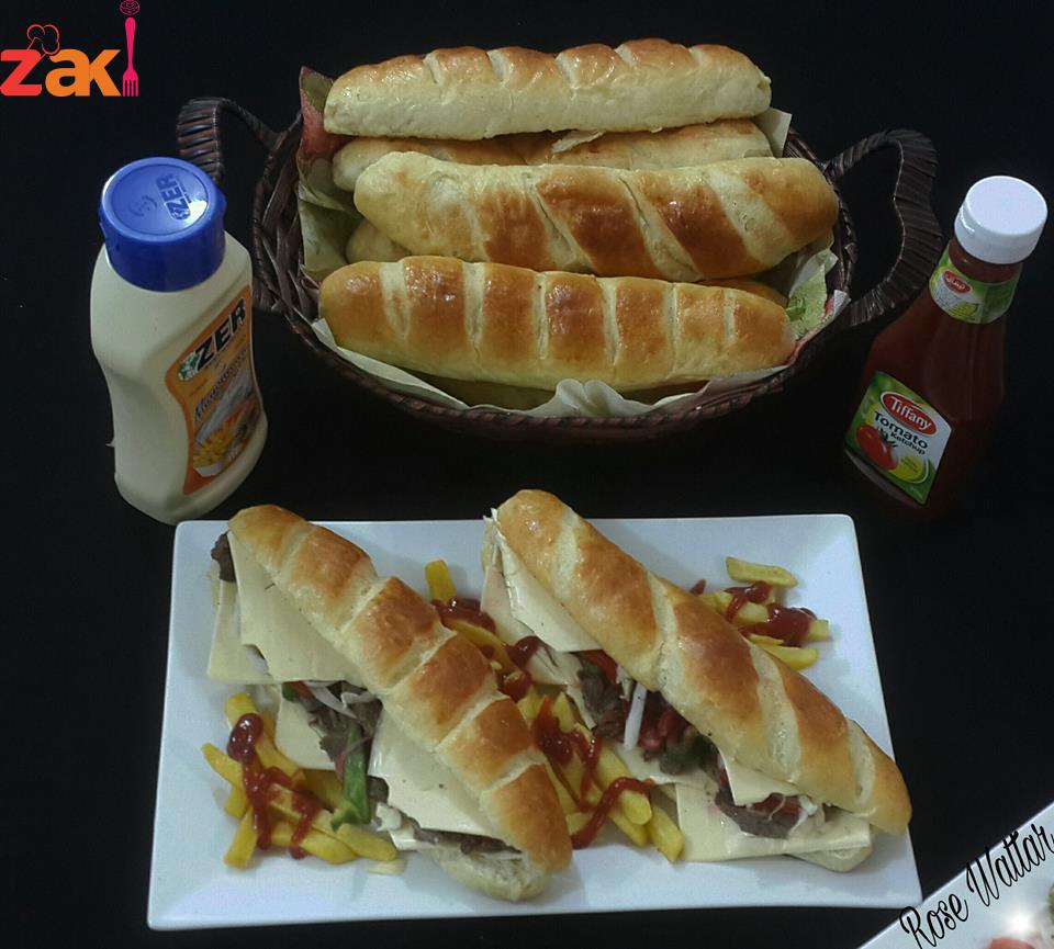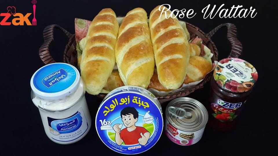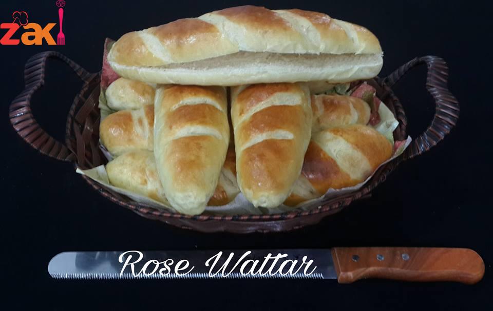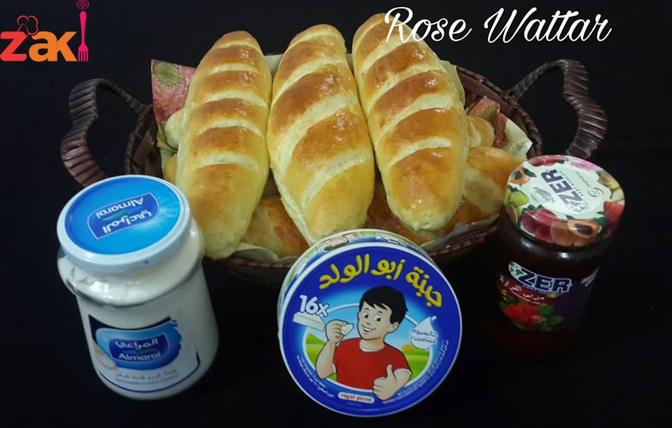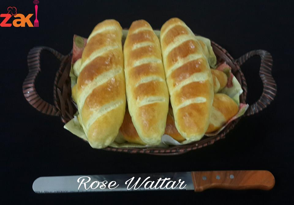 ثم يضاف الزبد وتعجن وتترك لتخمر ليتضاعف الحجم وتقطع إلى 8 قطع متساويه أو أكثر حسب الرغبه وتكور وتمد ع الطوله ع شكل مستطيل وتلف وتغلق الحافات جيدا