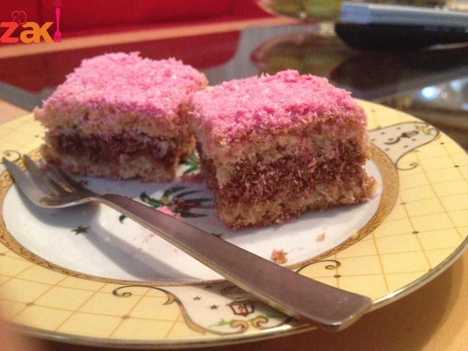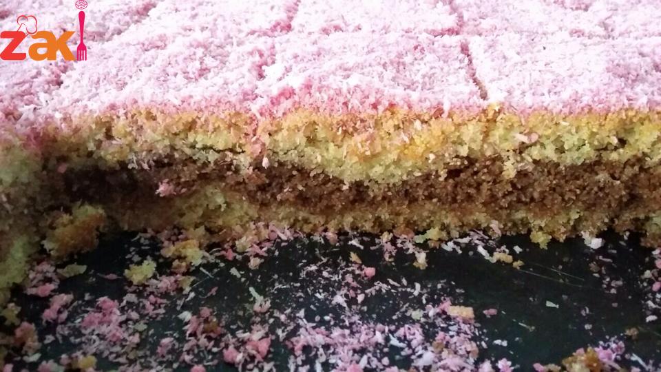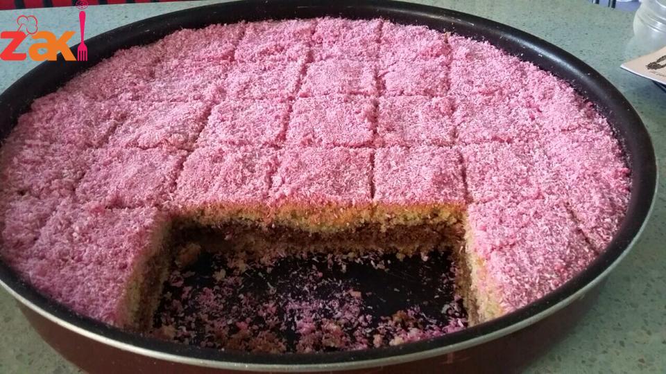 – نحضر فنجان سكر بودره + فنجان جوز الهند+ صبغة طعام لون احمر او اي لون ترغبيه بفركها مع بعض جيدا مع كم نقطه ماء ثم يرش على وجه الصينية بعد الخبز مباشرة وهي سخنة