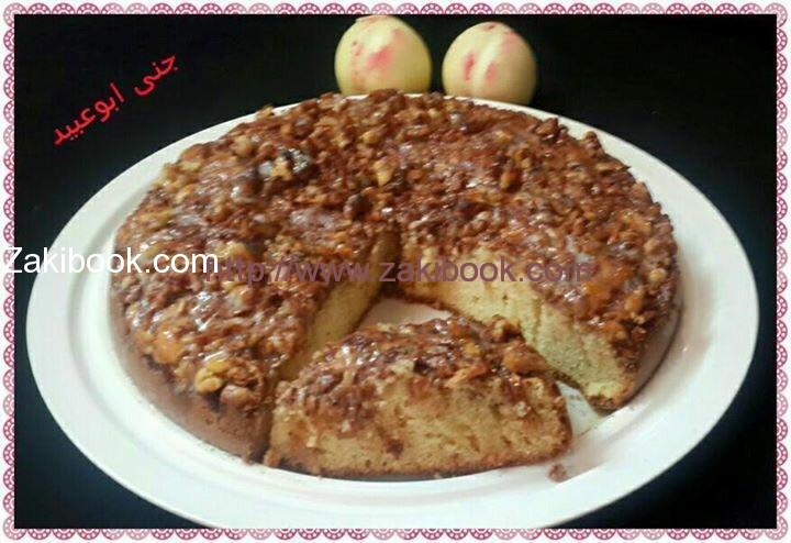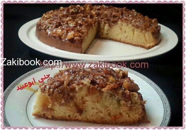 –  طبقة الوجه :نبشر التفاح ونخلطها بالسكر البني والقرفة ونحركهن جيدا ونفردهن فوق خليط الكيك بالتساوي ثم نضع الجوز المدقوق او اللوز ونخبزها بالفرن عدرجة 160 درجة هالرف الاوسط لمدة 45 دقيقة و نرش عليها حليب مكثف وصوص توفي وهي ساخنة.