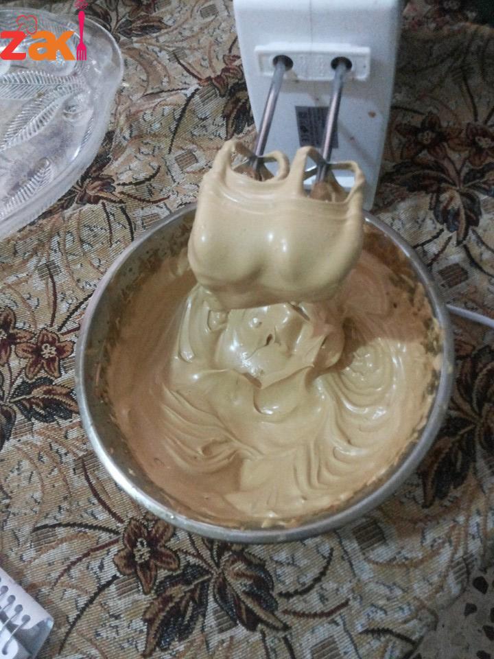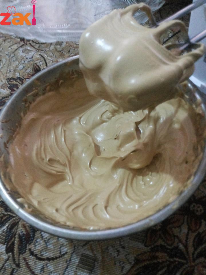 بنحضر فنجان نسكافيه سادة وفنجان سكر و فنجان ماء ساخن مغلي كله بنحطه بصحن غميق وبنخفقهن بالخفاقة الكهربائية لمدة ١٠ دقائق حتى يسير كريمي وبس تشوفيه جمد حطيه بالتلاجة مدة نص ساعة وبعدها ردي اخفقيه لمدة دقيقتين